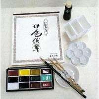 | 水墨画セット内容 ・12色角顔彩セット ・絵皿1枚(10.5cm) ・陶器梅皿蓋付き(12cm) ・樹脂トリオ筆洗い3層 ・青墨液80mI・色紙箋練習帳(50枚セット) ・筆3本(付立円山筆・教材彩色筆(中)・教材面相筆(中) |