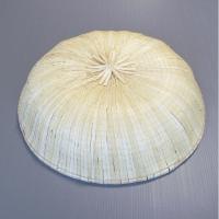 菅(すげ)製の子供用三度笠です。 菅草は黄色の糸で縫い合わせ、見映えを良くするとともに、耐久性を高めました。 丈夫な骨組みは型崩れを防止します。 大人用三度笠(NM-9202T)もございます。 武者行列や祭礼行事、お芝居や学芸会・お遊戯会等でご利用ください。 自然素材を使った手作り商品ですので、仕上がりに若干のばらつきがあります。 頭台は別売となります。 ■素材 本体:菅(すげ) 骨組み:プラスチックまたは竹ヒゴ ■サイズ 直径38センチ高さ9センチ ■重さ 130グラム ■色 薄茶 ■備考 さんどがさとは、竹の皮や菅を編んで作られた笠のひとつ、他の笠に比べると薄く平べったいドーム形をしているのが特徴。 股旅ものなどの時代劇で渡世人が被っている印象が強いが、もとは江戸、大坂、京都の三ヶ所を毎月三度ずつ往復していた飛脚(定飛脚「じょうびきゃく」)のことを三度飛脚と呼び、彼らが身に着けていたことからその名がついた。 フリー百科事典『ウィキペディア(Wikipedia)』より |