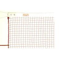 バドミントンネット [商品詳細] 品名:バドミントンネット 品番:703006 価格:¥5,800+税 サイズ:長さ602×幅76×編目1.9×ロープ長さ870cm 素材名:/綿 生産国:日本 その他: ■重量:約0.65kg ■太さ:20s/6本=約0.5mm ■ロープ:ビニロン ■テープ:綿厚綾織 ■網目カラー:赤褐色 [納期について] 発送までに、2〜5営業日頂戴しております。