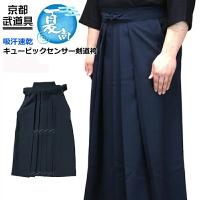 今話題の吸汗製テトロン剣道袴! 2007年より剣道日本などでも大きく紹介されている話題の新素材『東洋紡のキュービックセンサー』生地を仕様した剣道袴です! 生地としてはジャージと非常に似た生地になっております。 汗を良く吸収してくれ、また乾かしも早いので、暖かい時期に非常に重宝する逸品です! キュービックセンサーとは…DP構造という特殊給水機構(毛細管現象)をもった速乾織物です。 DP構造とは…太さが異なり、水や空気を通す多孔性の毛細管を二層に重ね合わせることにより、太い毛細管から細い毛細管へ一方通行で水分(水蒸気)を移動させる構造です。 これにより、汗を連続して吸収、その汗を記事表面へ速やかに移動、ベトツキを防止します。 汗を生地表面で拡散させ、すばやく乾燥します。 また、シワになりにくい素材です。 ジャージ剣道衣と同じく、試合用としては少し頼りないですが、夏場の稽古などには最適です! 通気性や速乾性があり、乾かしも早く使い勝手が良い剣道袴です。 色は紺と黒の二色ご用意いたしました。