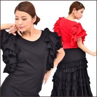 フラメンコ衣装 社交ダンス大きいサイズ Lサイズも 胸元斜2段&袖フリル トップス 練習着 レッスンウェア セール 用品 通販 ミカドレス t1-1T1-1 3,410円 |