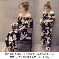 オールインワン 花柄 レディース オーバーオール オフショルダー サロペット ガウチョパンツ ワイドパンツ ウエストゴム サマー 結婚式 2017夏 3,990円 |