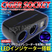 シガーソケット 2連シガーソケット分配器 USB3ポート搭載 12V/24V車対応 ブラック ブルーLED付き スマホ 充電 1,380円 |