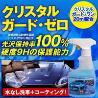 スプレーして拭き取るだけで、水なし洗車+クリスタルガラスコーティング これ一本で洗車・艶出・保護のオールインワン 今なら10%増量中です! 2本セットにさらに無料でマイクロファイバータオル(981円相当)付きで、送料も無料になる2本セットもございます。 汚れを落としながら、表面をクリスタルガラス化するコーティング剤です。 クリスタルガード・ワン20ml配合 5つの特徴 (1)光沢保持率100%を誇る強烈な輝き(JIS K 2396実証済) (2)10年以上持続する強靱な保護能力 (3)同時に水なし洗車+コーティングで時間を節約 (4)業務用レベルを家庭用価格で実現 (5)水を弾かずに膜状に流す疎水性被膜 水回りもいらない簡単施工 汚れた箇所にスプレーして拭き取るだけ。 汚れを分解しながら表面にクリスタルガラスの皮膜を形成します。