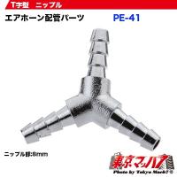 ホースを3方向へ分けます。 ■製品名:T字型ニップル ■品番:PE−41 ■ニップル部:8mm ■製造元:NIKKEN |