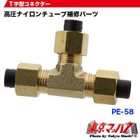 チューブ配管を3方向に分けます。 ■製品名:T字型コネクター ■品番:PE−58 ■製造元:NIKKEN ■配管後は各ジョイント部のエアーもれがないか、石けん水等でチェックしてください。