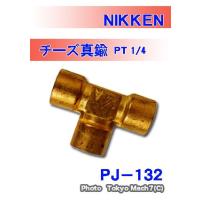PT1/4雌ネジで配管を3方向に分けます ■製品名:チーズ真鍮PT1/4 ■品番:PJ−132 ■ネジ径:PT1/4=2分≒12.3mm ■製造元:NIKKEN |