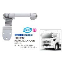 品番 572256 フロントグリップ 日野 大型NEWプロフィア用 純正グリップを取り外して交換してください。 取付ボルトやパッキン等は、純正品を流用してください。 グリップ部:樹脂 ヒンジ部:ダイキャスト ※ 本製品はアクセサリーであり、純正部品ほどの強度はありませんので無理な荷重や衝撃をあたえないようご注意ください。 ※ 車種、年式によっては取付できない場合があります。 ※ 純正グリップを取り外して交換してください。 取付ボルトやパッキン等は純正品を流用してください。