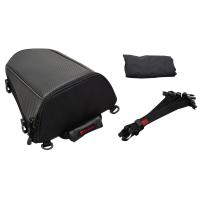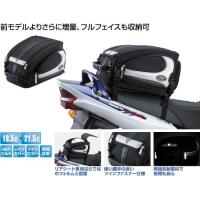 ■リアシート専用設計としたことで容量の稼げる“シートカウル”型のフォルムを実現。 ホップアップすると、なんとフルフェイスヘルメットも収納が可能。 (フルフェイスヘルメットの形状や大きさにより収納が不可能な場合もあります) ■トップカバーは2本のファスナーで大きく開閉できて収納物の出し入れがスムーズ。 ■強固なプラスチックバックルを側面部4箇所に装着し、リアシートからワンタッチで着脱ができてホールドも確実。 ■サイドに走るシルバーカーボン柄のストライプがスポーティーなイメージを演出。 しかもエッジ部分には高輝度再帰反射パイピングを装着して夜間走行時の視認性を向上。 遠距離からのライト照射にも反応。 ■カラー:ブラック/シルバーカーボン柄/ブラックカーボン柄 ■:H220(260)×W320×D380mm ■容量:約18.5リットル(標準時)〜約21.5リットル(増量時) ■素材:ポリエステル 100%(1680デニールPVC加工) ■付属品:シートマウント専用ベルト×2本、ショルダーベルト×1本、レインカバー(容量アップ仕様)×1枚 |