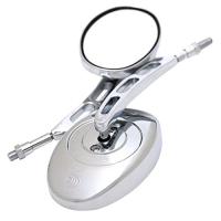 ショートステムオーバルミラー黒ハーレースタンダードなオーバル(楕円形)のミラーです。 純正は大きくてかっこ悪い、ハンドル周りをすっきりさせたい。 そんな人にお勧めです。 EVO以降の純正ハンドルマウントのウインカーも使用可能です。 ミラーとステムは芋ネジで固定するタイプですので、位置の調整が可能です。 関連商品に記載のミラークランプと組み合わせれば国産バイクにも使用可能です。 適合:- 色:ブラック内容物:左右兼用です。