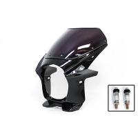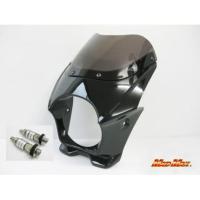 ・汎用タイプのビキニカウルです。 ・ネイキッドをスリムに変身 ・スクリーン用、ライト接触部用のモールが付属していますので、車検も問題ありません。 ・簡単取り付けボルト付(ライト取り付けネジ8mm用) ※スクリーンを固定している金色のウェルナットは付属しておりません。 ※ヘッドライト径180 取付幅:230 カウル:430×365×220 ホンダ ・VTR250・ホーネット250・CB400SF・CB400SFV・CB750・ナイトホーク750・CB1300SF・X4/X4LD ヤマハ ・SR400・XJR400R・SRX250・XJR1300・XJR1200 カワサキ ・ZRX1100II・ゼファー750・ゼファー400/X・ZR-7・W650・W400・ZRXII/400・バリオスI/II スズキ ・インパルス400・イナズマ400・グース350・バンディット250/V・GSX250FX・GSF750・GSF1200・GSX1400 ※スクリーン固定ボルトが錆び易いので、アルミウェルナットへの交換をお勧めします。 ※汎用品ですので、記載の車種であっても、年式、型式等により加工が必要な場合もあります。 サイズ、形状をよくご確認の上、ご購入下さい。