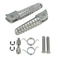アルミステップバーです。 サイズ:全長約100mmステップ幅約19mm x 長さ約70m取り付け部の穴約Φ8.1mm、取付部の厚み約21.4mmです。 純正品と比べると仕上がりは劣りますが、使用に問題ありません。 主な適合車種: ■スズキ B-KING GSR400/600 GSX1300R隼※隼は年式によりピンの太さが異なりますのでご注意ください。 GSX1400 GSX-R1000 GSX-R600 GSX-R750 インパルス バンディット1200/S バンディット1250/S ※スプリングとピンは使えない車種もありますのでご注意ください。