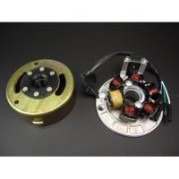 APE100(エイプ)FI車使用不可※純正配線とカプラーオン ■軽量アウターローター仕様のジェネレーターです。 ■純正よりも軽量なため、高回転性能やピックアップ特性を向上。 ■ステーターコイルのコイル数を8個としたことで、すぐれた発電性能を発揮。 ■低回転でも安定した点火を実現し、安定したアイドリングを確保。 ■ ■点火方式 CDI ■ローター重量 約420g ■ローター発電能力 約50W/5000rpm |
