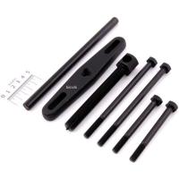 スタッドボルトリムーバー ボルトや、棒状のシャフトを噛ませて抜き取る工具です。 12.7mm(1/2インチ)差込角のラチェットハンドル等で回します。 直径13mmと、直径19mmの穴に対象を差し込んで、回します。 テコの原理でしっかりと固定して回すので、リムーバーとしてとても大きな力が加えられます。 本体のサイズ 直径約54mm 全高約66mm 重量約600g ネジだけのボルトの抜き取りができる。 クランクケースのスタッドボルト交換に。 圧入されたシャフト、鉄筋、折れたボルトの抜き取りに。 エキストラクターとして。