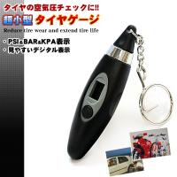 車やバイクのタイヤの空気圧が簡単にわかるデジタルタイヤゲージ。 空気圧が低すぎると燃費も悪く、パンクの原因にもなります。 逆に高すぎるとバーストする恐れもございます。 燃費の向上と安全の確保のためにも、定期的に空気圧を点検し、安全で快適なドライブを楽しみましょう! 1.電源をONにして単位を切り替えます。 2.キーホルダーが付いている先端のノズルを回しながら外し、タイヤのバルブに押し込みます。 ※空気漏れの原因になりますので、必ずバルブと一直線になる感じで押し込み、使用してください。 3.ディスプレイに計測された空気圧が表示されます。 ※一定時間(約30秒)で表示は消え、データは消去されます。 5点まで普通郵便(定型外)でのお届けも可能(全国一律¥320)。 6点で郵送ですと500円。 ・表示 PSI、BAR、KPA ・計測範囲 5.0〜100PSI、0.35〜7.00BAR ・電池 LR44ボタン電池x2 ・対応バルブ 米式 ・サイズ 全長:8.5cm |