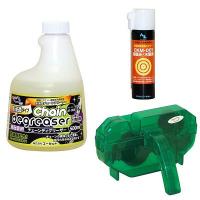 潤滑剤が入っていないから、お好みのチェーンオイルの走りが堪能できる 低臭性・速乾タイプ、水洗い不要のチェーンクリーナーが入った自転車メンテナンスセット セット内容:クイックゾル1L、チェーン洗浄機、ギアクリーニングブラシ2本セット、チェーンルブ ロードレースSP 50ml、バイクウォッシュ480ml [チェーンルブ ロードレース50mlSP] 高級特殊合成オイルをベースに、極圧剤など各種添加剤を有効に配合しました。 また、耐水性にも優れ、急な雨にも対応できます。 潤滑性抜群のロードレース用スペシャルオイル。 [クリーニングブラシセット2本] 自転車の洗浄に便利な2点セット。 ブラシはディレーラーやチェーンなどの汚れを落とし、もう一方はギアの間に詰まった泥などをかき出すのに便利です。 [バイクウォッシュ480ml] 自転車ボディ用の水溶性クリーナー。 各種素材、塗装面にやさしいため、安心してご使用いただけます。 フレームなど様々な自転車パーツに使用でき、汚れやほこりをしっかり落として、ピカピカにします。 特殊シリコン配合により、はっ水・艶出し効果に優れているため、洗浄後、水をはじき。 自転車表面に光沢を与えます。