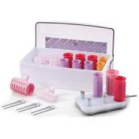 ■3L×2本、LL×2本、L×2本 ■海外使用OK ■本体サイズ:H44×W93×D93mm ■コードの長さ:約1.2m ■カーラーサイズφ:3L35mm、LL30mm、L25mm ■本体重量:約316g(カーラー、止めピン、ワイドクリップ含む) ■消費電力:27W ■付属品:ワイドクリップ4個、止めピン4本 [スタンド]4本立スタンド[カーラー本数]カーラー6本:3L×2本、LL×2本、L×2本 |