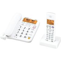 前衛機のシンプルさを継承。 人気の「プラスチックキー」を採用。 本体の機能ボタンを1つ削減。 ゴムキーをプラスチックキーにすることで、ダイヤルはクッキリ、周囲のボタンはスッキリ!ちょっと安心!お名前確認&音量大親機にお名前確認ボタンを搭載。 電話に出る前に、相手に名乗ってもらえます。 ナンバー・ディスプレイ未契約で使える安心機能です。 また、子機に音量大ボタンを搭載。 通話中、相手の声が聞き取りにくい時、音量大ボタンを押すと、相手の声が一気に聞き取りやすくなります。 万一の安心!停電時通話対応停電の際に、電話の受発信ができます。 (親機の受話器を使った受発信)※ひかり電話等をご利用の場合、電話機と接続しているアダプターが停電で使用できなくなることがあります。 その際は、通話できません。 / ■仕様 ■サイズ(約)・・・親機(子機を装着した状態での数値) : 幅 146 × 奥行 174 × 高さ 73 mm子機 : 幅 49 × 奥行 28 × 高さ 176 mm質量(約)・・・本体 : 456 g子機 : 132 g(充電池含む)電話帳 : 親機 10 件 / 子機 100 件留守 |