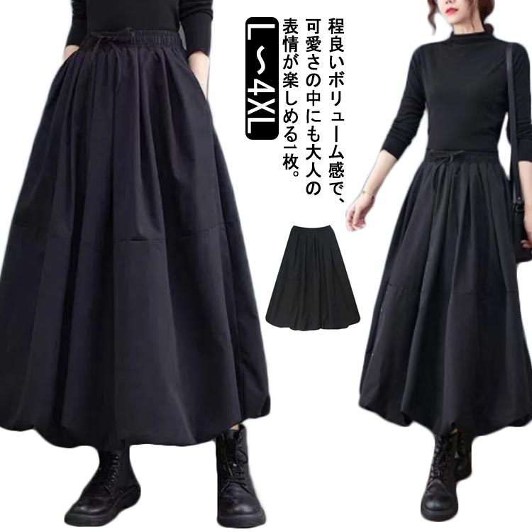 程良いボリューム感で、可愛さの中にも大人の表情が楽しめる1枚。ウエストゴムなので窮屈感もなく、着脱も楽ちんです。落ち感のありつつ広がりすぎないシルエットで、可愛らしさと上品さを両立。ふんわりとした質感のフレアスカートは、幅広いコーデに合わせやすい。 サイズL XL 2XL 3XL 4XLサイズについての説明L:スカート丈83cm/ウエスト64-90cm; XL:スカート丈84cm/ウエスト65-91cm; 2XL:スカート丈85cm/ウエスト66-92cm; 3XL:スカート丈86cm/ウエスト67-93cm; 4XL:スカート丈87cm/ウエスト68-94cm;素材ポリエステル色ブラック備考 ●サイズ詳細等の測り方はスタッフ間で統一、徹底はしておりますが、実寸は商品によって若干の誤差(1cm〜3cm )がある場合がございますので、予めご了承ください。 ●商品の色は、撮影時の光や、お客様のモニターの色具合などにより、実際の商品と異なる場合がございます。あらかじめ、ご了承ください。●製品によっては、生地の特性上、洗濯時に縮む場合がございますので洗濯時はご注意下さいませ。▼色味の強い製品によっては他の衣類などに色移りする場合もございますので、速やかに(脱水、乾燥等)するようにお願いいたします。 ▼生地によっては摩擦や汗、雨などで濡れた時は、他の製品に移染する恐れがございますので、着用の際はご注意下さい。▼生地の特性上、やや匂いが強く感じられるものもございます。数日のご使用や陰干しなどで気になる匂いはほとんど感じられなくなります。