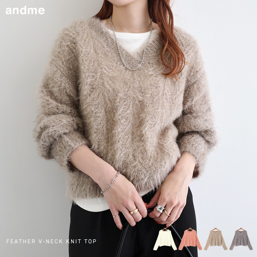 ふんわりとした毛足と華やかな透かし編みが魅力の、Vネック・ニットプルオーバーが新登場しました!軽やかなフェザー糸を使用し、ローゲージでざっくりと編み上げた一枚。Vネックのすっきりとしたシルエットで首元はすっきりと見せつつ、着丈はやや短めでバランスの取りやすいデザインが女性らしさを引き立ててくれます。柔らかくチクチクしにくい素材感で肌に優しく馴染み、快適な着心地に。秋冬のスタイリングに軽やかな抜け感をプラスしてくれる、一枚で着映える主役級ニットトップスです![同素材の展開アイテム]・Vネック長袖ニットカーディガン(商品番号:6002516)・ニットキャミソール(商品番号:6002517)※撮影時のライティング、ご覧になっているモニター・PC環境により実際の商品と色味が異なって見える場合がございます。ご了承の上お買い求め下さい。参考サイズ:【Mサイズ】着丈:50cm肩幅:50cm身幅:53cm袖丈:52cm裾幅:50cm袖口:11cm素材:ポリエステル:100%≪備考≫伸縮性:あり透け感:あり生地の厚さ:やや厚手肌ざわり:柔らかいその他:3ゲージ、透かし編み生産地:中国製手洗い:可 ドライクリーニング:可 ウェットクリーニング:可■カラー:オフホワイト、グレー、ベージュ、ピンク参考サイズ:【Mサイズ】着丈:50cm肩幅:50cm身幅:53cm袖丈:52cm裾幅:50cm袖口:11cm※( )で表記されている数字はヌードサイズです。ヌードサイズとは衣服を身につけない身体のサイズです。お客様ご自身の身体サイズと比較してお選びください。 ■素材: ポリエステル:100% ■お手入: 手洗い:可 ドライクリーニング:可 ウェットクリーニング:可 >>商品のお取り扱い方法 ■原産国: 中国製シアー シャギー 起毛 ニット トップス/アンドミー(andme)オフホワイトグレーベージュピンク画面上と実物では、多少色具合が異なって見える場合がございます。