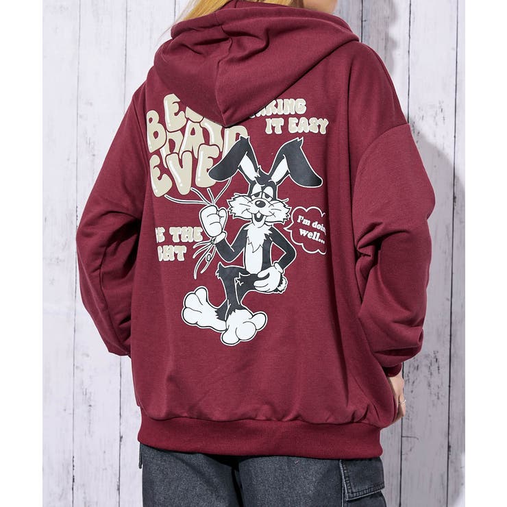 《遊び心たっぷりのバックプリントで存在感抜群☆》背中には発泡プリントのロゴとラバーイラストを大胆にオン。フロント胸元は刺繍ロゴで、さりげなくもおしゃれなアクセントをプラスした裏毛スウェットパーカーです。■デザイン立体感のある発泡ロゴとラバーのキャラクターイラストで、後ろ姿までキャッチーに演出。胸元には小さな刺繍ロゴをあしらい、フロントはシンプルなのに後ろはしっかり映えるデザイン。ゆるめシルエットでストリート感のある仕上がり。■スタイリングデニムやカーゴパンツと合わせてカジュアルストリートに。ミニスカやショーパンで韓国風の甘辛MIXコーデにも相性◎。羽織るだけで存在感を発揮するのでデイリーにもお出かけにもおすすめです。バックスタイルで差がつく、主役級スウェットパーカー☆サイズ:F 本体:総丈69.5cm身幅68cm肩幅64cm袖丈51.5cm裾幅9.5cm本体:ポリエステル85%綿15%/リブ部分:ポリエステル71%綿26%ポリウレタン3%■素材感透け感:なし裏地:なし伸縮性:なし※商品のお取り扱いに関しましては、商品に付属のアテンションカード、洗濯ネームをご覧ください。原産国:中国※商品写真はできる限り実物の色に近づけるよう努めておりますが、 お使いのモニター設定、お部屋の照明等により実際の商品と色味が異なる場合がございます。また、生産時期により、色・サイズ・デザインが多少異なる場合がございます。あらかじめ御了承下さい。返品・交換について購入後の交換は受け付けておりません。予めご了承ください。返品を希望される場合は購入履歴一覧の「ショップへの問い合わせ」よりお問い合わせください。=========================複数配送先指定について1件の注文に対して、異なる住所への配送は対応出来かねます。恐れ入りますが、異なる住所へ配送をご希望の場合、配送先毎に分けて注文いただきますようお願い申し上げます。【トップスWOMEN】オフホワイト チャコール ボルドー ネイビー Fオフホワイト チャコール ボルドー ネイビー