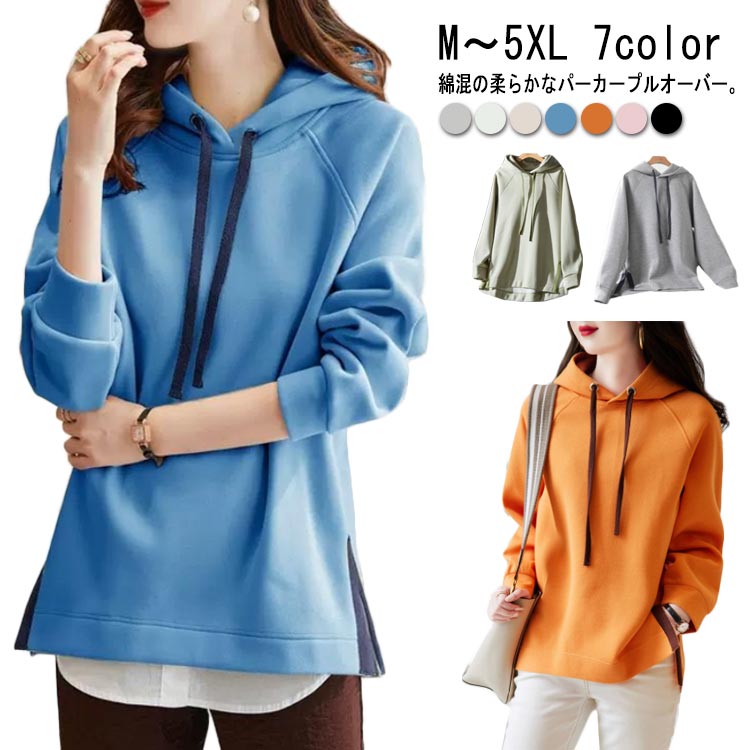 綿混の柔らかなパーカープルオーバー。サイドスリット入りのオーバーサイズなので体型を上手に隠しながらきれいなシルエットが完成します。大人可愛いシンプルなカジュアルスタイルを楽しめます。スポーティーなスタイルから、ナチュラルカジュアルスタイルまで、幅広いコーディネートが楽しめる。 サイズM L XL 2XL 3XL 4XL 5XLサイズについての説明【お勧め体重】M:45KG, L:45-50KG, XL:50-57KG, 2XL:57-62KG, 3XL:62-70KG, 4XL:70-80KG, 5XL:80-92KG.素材コットン ポリエステル色グレー グリーン ベージュ ブルー ブラック オレンジ ピンク備考 ●サイズ詳細等の測り方はスタッフ間で統一、徹底はしておりますが、実寸は商品によって若干の誤差(1cm〜3cm )がある場合がございますので、予めご了承ください。 ●商品の色は、撮影時の光や、お客様のモニターの色具合などにより、実際の商品と異なる場合がございます。あらかじめ、ご了承ください。●製品によっては、生地の特性上、洗濯時に縮む場合がございますので洗濯時はご注意下さいませ。▼色味の強い製品によっては他の衣類などに色移りする場合もございますので、速やかに(脱水、乾燥等)するようにお願いいたします。 ▼生地によっては摩擦や汗、雨などで濡れた時は、他の製品に移染する恐れがございますので、着用の際はご注意下さい。▼生地の特性上、やや匂いが強く感じられるものもございます。数日のご使用や陰干しなどで気になる匂いはほとんど感じられなくなります。