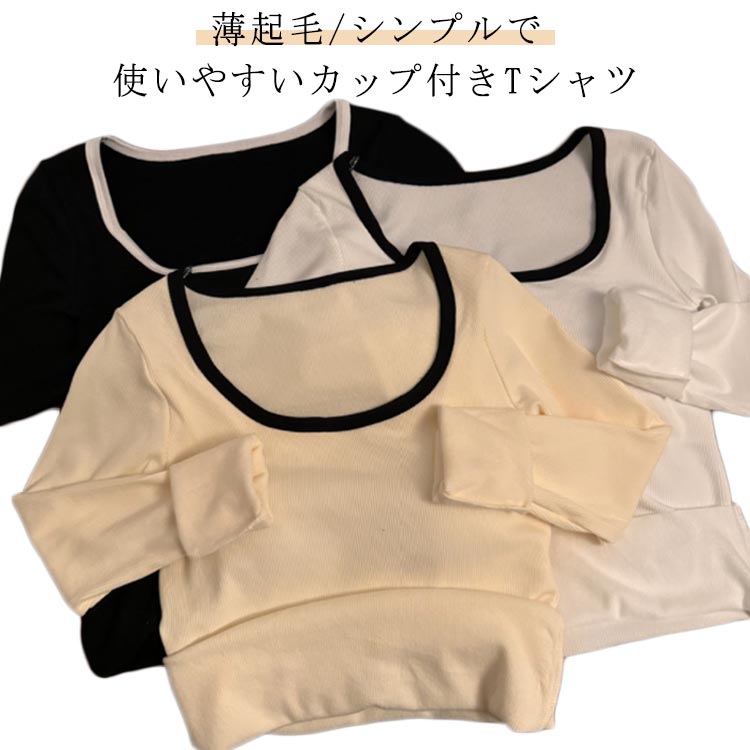女性用婦人下着肌着防寒秋冬インナーシャツスクエアネック暖かいブラトップ長袖レディーストップスリブカップ付き