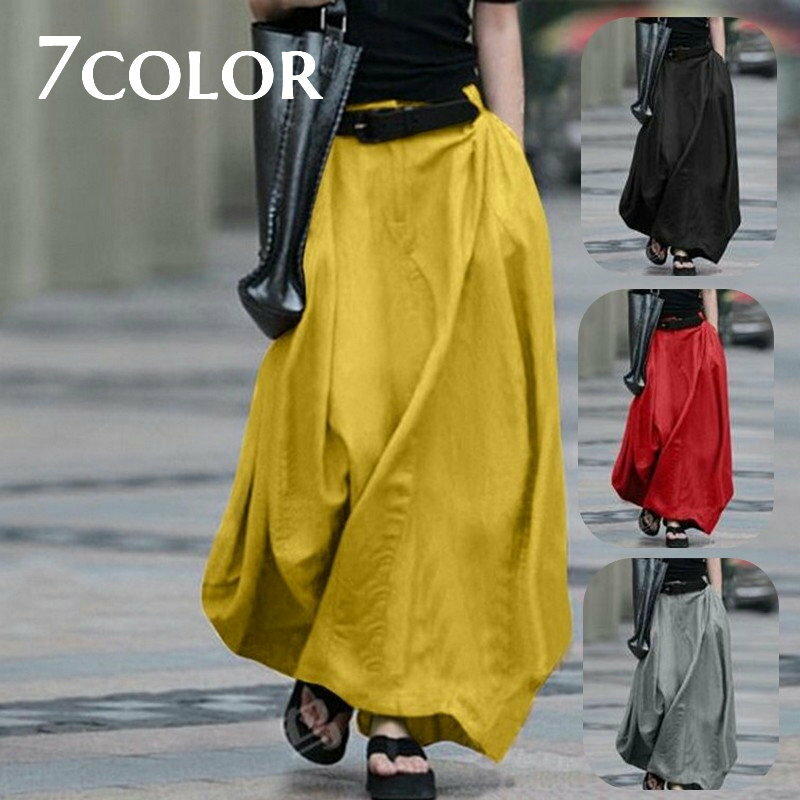 ボリュームのあるデザインがおしゃれなレディース用マキシ丈ロングスカートです。 【サイズについて】 画像をご参照ください。 【カラーについて】 生産ロットにより柄の出方や色の濃淡が異なる場合がございます。 お使いのモニターや撮影時の光の加減などにより 画像と実際の商品のカラーが異なる場合もございます。 予告なしにカラーやデザインなどの変更がある場合もございます。 ※色落ちする場合がございます。 手洗い後、ご着用くださいますようお願い致します。 【素材について】 65%綿35%ポリエステル