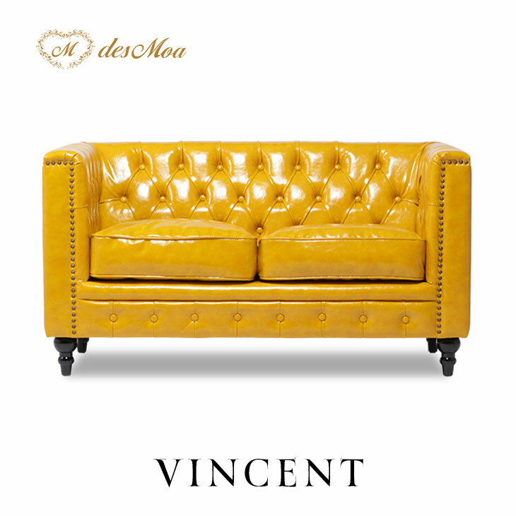 アンティークソファ合皮ソファー店舗用2人掛けソファ二人2人用チェスターフィールドアンティーク調調家具イエロー英国調モダンスタイルおしゃれインテリアヴィンセントVM2P69K