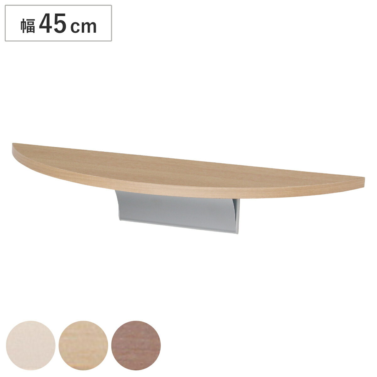 サイズ約 幅45×奥行14×高さ8.9(cm)重量約 0.6kg内容量1個付属品:石こうボード用ピン(剛力ピン)、木壁用ネジ材質本体:アルミ、木質ボード、樹脂(キャップ)付属品:石こうボードピン(剛力ピン)、木壁用ネジ種類アイボリー、ナチュラル、セピア備考・安全荷重:ピン約3kg/ネジ約5kg(安全荷重は均等に載せた場合です。)区分返品・キャンセル区分(小型商品)ギフトラッピングページを見る●壁につける収納、ラウンドシェルフ幅45cmです。●リビングや洗面所、寝室などの壁に簡単に設置ができます。●付属の剛力ピンかネジで取り付けできます。※商品ページ内には別商品を含む画像を使用しています。ちょっとした壁につける収納 ラウンドシェルフ幅45cm「リビングに小物をディスプレイしたい」「洗面所に、タオルや洗剤を置けるような棚がほしい」「トイレに観葉植物などグリーンを飾りたい」といった願いを叶えてくれる半円状の壁掛け収納です。限られた空間でも邪魔にならず、それでいて使い勝手の良いサイズです。商品詳細欲しいところに簡単設置石こう壁、ベニア壁、木壁といった色々な材質の壁に対応しているため、家の中のちょっとした壁の空きスペースに簡単に設置して理想の空間が作れます。剛力ピンで取付安心従来の木ネジを使用すると、壁に大きな穴があき、大切なお家の壁が台無しになっていましたが、剛力ピンなら複数の細いピンで固定するので穴が目立ちにくく安心です。設置方法石こうボード用の剛力ピンだけでなく木壁用のネジも付属しているので、飾るものや壁に応じて選んでいただけます。(安全荷重/剛力ピン:3kg、ネジ10kg)カラーサイズ壁の素材の見分け方シリーズ紹介ウッドシェルフ 20cmウッドシェルフ 40cmロングシェルフ 60cmロングシェルフ 80cmロングシェルフ 120cmラウンドシェルフ 45cm関連キーワード:壁掛け収納 穴が目立ちにくい ベージュ ブラウン 茶 オシャレ お洒落 便利グッズ 便利用品 人気 おすすめ オススメ 省スペース 有効活用 石膏ボード ディスプレイ 飾る 鍵置き 小物置き タオル 洗剤 植物 置物 壁掛け棚 幅45×奥行14×高さ8.9cm 約 幅45 奥行14 奥行15 高さ10 高さ9 cm センチ 木目 シンプル アルミ LH6438 LH792関連商品はこちらシェルフ ロングシェルフ 120cm 壁付け 19,580円シェルフ ロングシェルフ 80cm 壁付け 棚13,860円シェルフ ロングシェルフ 60cm 壁付け 棚11,000円シェルフ ウッドシェルフ 40cm 壁付け 棚4,290円シェルフ ウッドシェルフ 20cm 壁付け 棚3,620円シェルフ カドアールシェルフ 22cm 壁付け4,400円シェルフ 幅120cm ラージ 壁面収納 19,580円シェルフ 幅40cm ラージ 壁面収納 8,910円シェルフ 幅80cm ラージ 壁面収納 13,860円シェルフ 幅80cm アイアン 10,450円シェルフ 幅60cm アイアン 9,240円シェルフ 幅40cm アイアン 8,360円