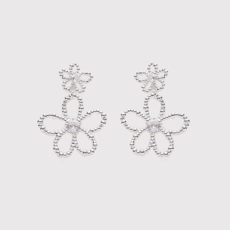 イヤリングレディースバレエ風蝶結びジルコニア小ぶり電気メッキ加工幾何学花柄清新甜美スタイル花フラワーモチーフ