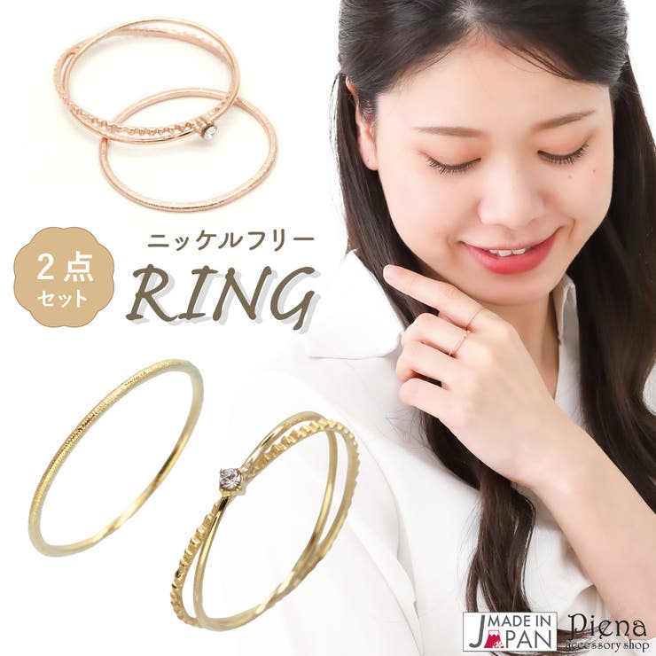 ギフト対応 素材 真鍮製 ラインストーン ニッケルフリー サイズ リングサイズは全て約11号のみ (ワンストーン) ストーン直径:約2.5mm 太さ:約0.5mm 厚み:約0.5mm (5石デザイン) 太さ:最大約3.0mm、最大約1.0mm 厚み:約1.5mm 異なるデザインが2本セットになった上品なリングです。 素肌にさらりと溶け込む、女性らしい可憐なデザイン。 さりげなくキラリと煌めくラインストーンがポイント♪ シンプルでどんなコーディネートにも合わせやすく、 華奢なフォルムが指をほっそりと見せてくれる効果も。 ファッションにあわせて着ける本数を増やしたり減らしてみたり、 ボリュームのあるリングとの重ねづけなど、 お手元のアレンジがお楽しみ頂けるアイテムです。 金属アレルギーの主な原因の一つであるニッケルをほぼ含まずに光沢感、 耐食性を併せ持つニッケルフリーコーティング仕上げをしています。 ノンニッケル仕上げ、ノーニッケル仕上げとも呼ばれています。 金属アレルギーをお持ちの方でも比較的安心してご使用いただけます。 (全ての方に金属アレルギーが出ない事を保障する物ではございません) 類似商品はこちらセットリング レディース ニッケルフリー 日本1,598円セットリング レディース ニッケルフリー 日本1,598円セットリング レディース ニッケルフリー 日本1,598円フリーサイズリング レディース ニッケルフリー1,598円リング レディース シルバー925 ルビー 一3,998円リング レディース 日本製 ニッケルフリー 天1,980円フリーサイズリング レディース ニッケルフリー1,598円リング レディース キュービックジルコニア ニ1,398円リング レディース ニッケルフリー キュービッ1,398円新着商品はこちら2026/1/27ピアス つけっぱなし フープ レディース メン580円2026/1/27ピアス つけっぱなし フープ レディース メン580円2026/1/27イヤリング フープ チタン レディース メンズ580円再販商品はこちら2026/1/28ピアス レディース 天然石アメジストが輝く k7,780円2026/1/28天使の羽モチーフ 天然石ホワイトトパーズが輝く7,780円2026/1/28ピアス レディース 日本製 K10金 大小2つ9,580円2026/01/28 更新