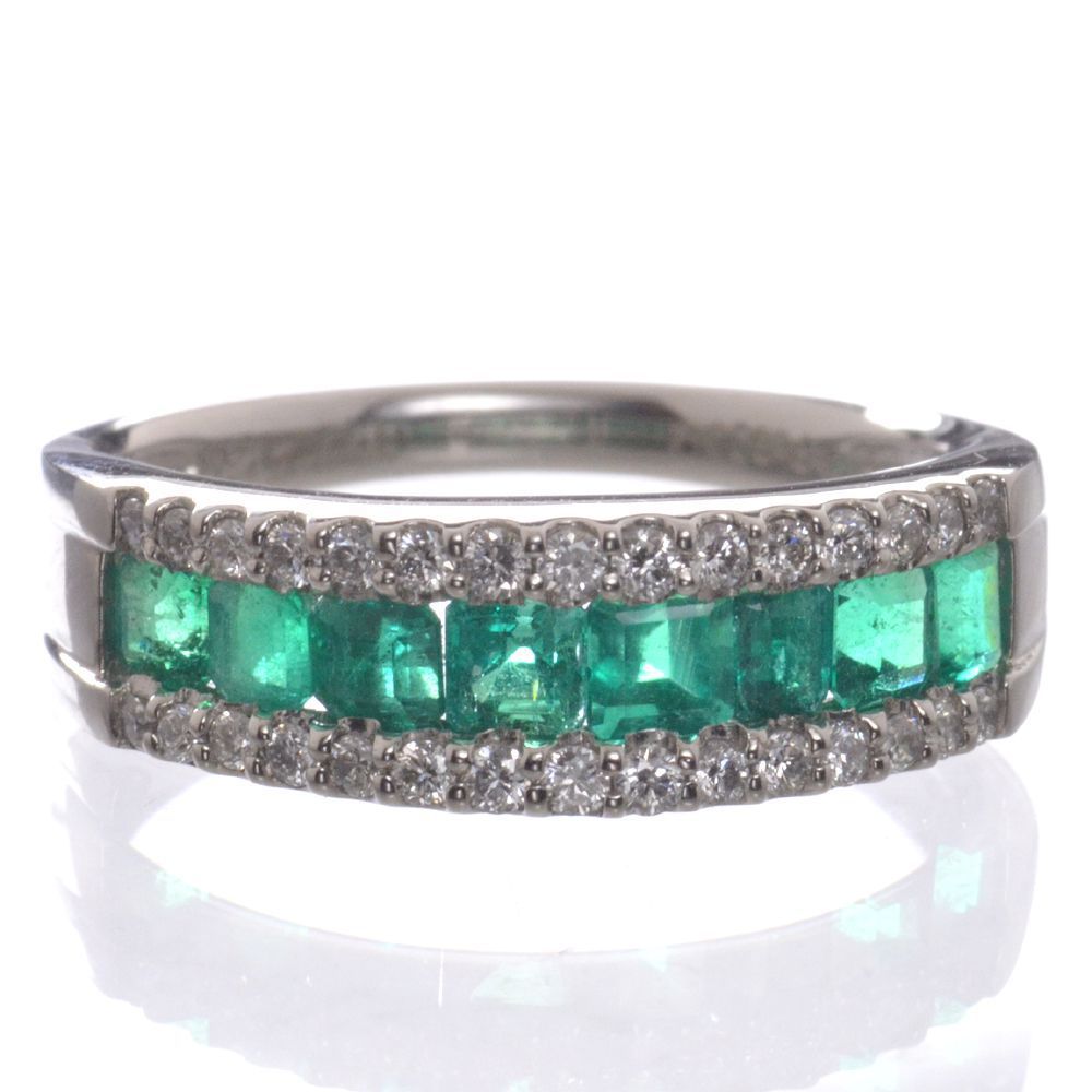 商品番号 CTC00598 使用貴金属 Pt900(プラチナ900) 脇石 エメラルド計0.77カラット ダイヤモンド計0.24カラット 総重量 約4g(13号にて計量しています) サイズ 幅:(リング上部)約6.0mm (リング下部)約2.1mm厚み:(リング上部)約2.7mm(リング下部)約1.0mm 付属品 鑑別書 ジュエリーケース 備考 納期4週間(受注生産品・商品代引不可) 発色の良いエメラルドとダイヤモンドを使用したリングです。ダイヤモンドで挟み込むようにセットされたエメラルドは鮮やかで目を惹きます。素材はプラチナ900をたっぷり使用し贅沢に仕上げました。ダイヤモンドは無色透明H〜Jカラー、SI〜I1、Goodカット程度で照りのある上質なものをセット致します。ご注文をお受けしてから国内工房の職人が手作業でお作り致します。プラチナ レディース 指輪 人気メンズジュエリー 人気レディースジュエリー 新作ジュエリー 喜平一覧