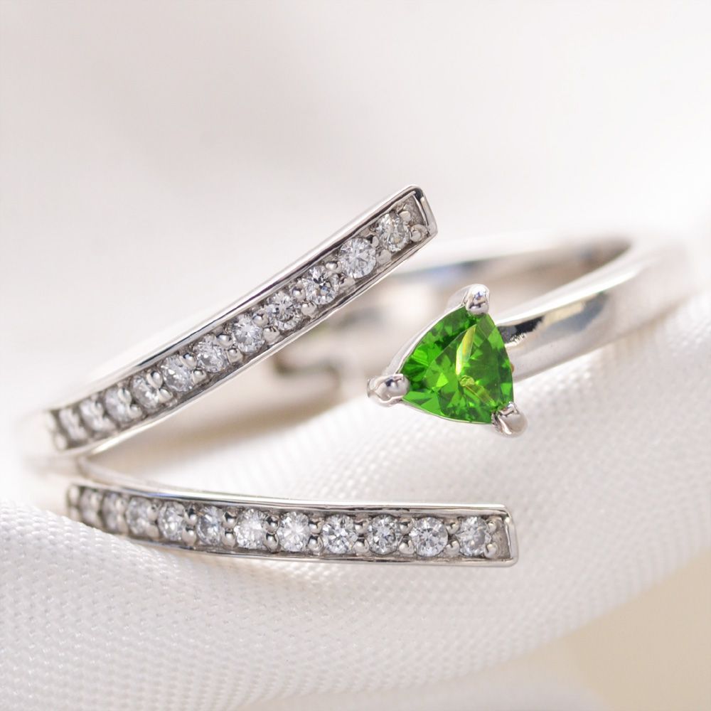 商品番号 CTC01034 使用貴金属 Pt900(プラチナ900)※刻印有り 使用石 ダイヤモンド計0.12カラット デマントイドガーネット0.12カラット 総重量 約6.2g サイズ 幅(リング上部)約9.9mm 幅(リング下部)約3.3mm 厚み(リング上部)約3.2mm 厚み(リング下部)約2.9mm 付属品 鑑別書 ケース 備考 納期4週間(受注生産品・商品代引不可) ※使用石と重量は若干上下する場合がございます。 8号から16号程度まで無段階で開閉して使用できるフリーサイズリングです。その日の体調などによって指がむくんでしまっても自由にサイズを微調整できるのでいつもベストな着け心地で使用可能。しっかりとプラチナを使って厚みと幅を確保した中折れ式のリング枠はしっとりとした重厚感のある動き。決めたサイズで確実に固定します。もちろん使用するデマントイドガーネット、ダイヤモンドも上質なものを厳選。体型の変化を気にせず長く使えるお勧めリングです。 アウイナイト ダイヤモンド フリーサイズ リング 指輪 プラチナ Pt900 中折れ式 刻印入り 鑑別書付き 日本製 パライバトルマリン ダイヤモンド フリーサイズ リング 指輪 プラチナ Pt900 中折れ式 トリリアント 刻印入り 鑑別書付き 日本製 ピンクダイヤモンド ダイヤモンド フリーサイズ リング 指輪 プラチナ Pt900 中折れ式 刻印入り 中央宝石研究所 ソーティング済み 鑑別書付き 日本製人気メンズジュエリー 人気レディースジュエリー 新作ジュエリー 喜平一覧