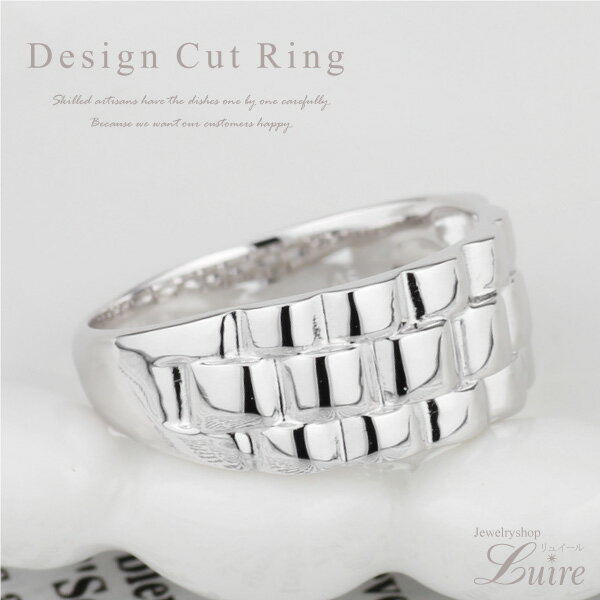 コンビニ受け取り対応商品 デザインカット 地金リング プラチナ900 ◆Item Spec 商品説明 立体的なカットで、溝と表面でリングの陰影を楽しむことができる、繊細なデザインのリングです。 また、カット面が多いので光が当たってキラキラと輝きます。 立体の四角形を象ったシンプルなリングですが、職人技が光る丁寧で繊細なデザイン。 少し幅のあるリングも、リボンを編み込んだ様にも見えるなだらかな曲線が、ハード過ぎずスタイルのアクセントとして是非おススメのリングです。 自分へのご褒美にはもちろん、クリスマスプレゼント、ホワイトデーなどのアニバーサリーや、大切な二人の記念日や誕生日プレゼントにもおススメです。 地金素材 プラチナ900 大きさ 最大幅:約7.6mm 高さ(厚み):約1.6mm 刻印 金種 リング サイズ 3号〜14号(その他のサイズは別途サイズ直しチケット⇒をお買い求めください。) 付属品 品質保証書・ジュエリーケース お届け予定 受注生産になりますので約2週間程お時間を頂いております。 その他 ・受注生産のためキャンセル、商品変更は、ご注文受付後2営業日以内にお願い致します。 ・万が一、不良品等がございました場合は7日以内にご連絡下さい。送料等、弊社負担にて迅速に誠意を持って対応させて頂きます。尚、受注生産となります為、お客様のご都合での返品はお受けする事が出来ません。 ・到着後のサイズ直しは有料となりますので、ご了承下さい。■デザインカット 地金リング プラチナ900■ 立体の四角形を象ったシンプルなリングですが、職人技が光る丁寧で繊細なデザイン。 少し幅のあるリングも、リボンを編み込んだ様にも見えるなだらかな曲線が、ハード過ぎず スタイルのアクセントとして是非おススメのリングです。 *同デザインのK18/K10ゴールドもございます* ●K18ゴールドは⇒こちら ●K10ゴールドは⇒こちら