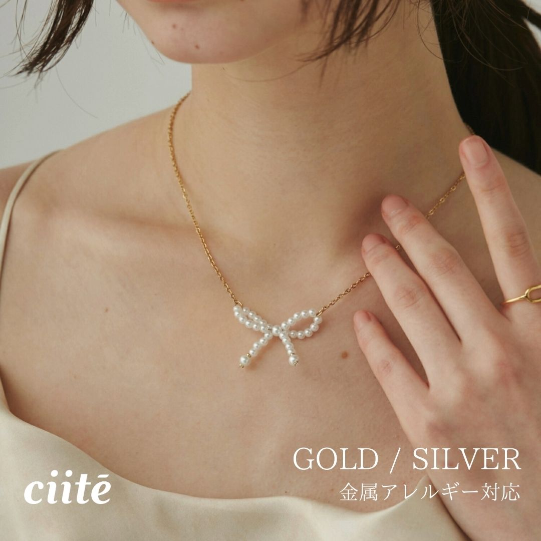 ▼ ゴールド▼ シルバー 商品名 【 金属アレルギー対応 】 パールリボンネックレス サージカルステンレス 素材 サージカルステンレス サイズ 長さ:43.3cm - 49cm、トップ:2.5cm×3.8cm 備考 【金属アレルギー対応 サージカルステンレス】1. 医療用メスにも使用されている、最高位の金属アレルギー対応素材。2. 圧倒的に変色しにくい。錆びにくい。3. 水に強いためお風呂、温泉、海、プールでも付けたままでも大丈夫◎金属アレルギーの方はもちろん、そうでない方にも「いつでもつけっぱなしで大丈夫! 肌に優しい!」と大人気な素材です。【サージカルステンレスとは?】サージカルステンレス素材とは、サージカル=医療用の、ステンレススティール=錆びない鋼鉄、という2つの言葉を合わせて作られた造語です。腐食しにくい素材で、医療用のメスなどの医療用器具や、ハサミなどにも使われています。変色しにくい上に、お風呂、温泉、プール、海など水に強く錆びにくいのが特徴。金属アレルギーの方でもご使用いただけるのが最大のメリットです。◆商品説明◆パールで形を作ったリボンが大人可愛い印象のネックレス。普段使いはもちろん、結婚式の披露宴や二次会、ちょっとしたお呼ばれの場など多くのシーンで大活躍すること間違いなしです◎◆ ciite'(シーテ)◆フランス語で「街」を意味する「cite'」に由来。付けたときのシルエットやバランスにこだわった、すこしの個性と遊び心を演出するデイリーユースアイテムを展開します。*撮影環境によりスマートフォン、パソコンなどの画面上と実物では多少色味が異なることがございます。*商品の特性上、色や形に多少の個体差がございますので予めご了承ください。※アレルギーの原因はさまざまです。サージカルステンレスはアレルギーが起きにくい素材ではありますが、すべての方にアレルギーが起きないことをお約束するものではありません。予めご了承くださいませ。またアレルギーが出た場合は使用をお控え頂くようにお願いいたします。 送料 配送方法はヤマト運輸のネコポスになります。 ※ネコポスはポスト投函配送となるため、到着日時の指定をお受けすることはできません。 関連ワードサージカルステンレス 金属アレルギー 金属アレルギー対応 金アレ対応 K18 18K コーティング つけっぱなし 人気 シンプル おすすめ おしゃれ かわいい 軽い 可愛い 金 華奢 結婚式 軽量 セット 定番 取れにくい 抜け感 ノンアレルギー ギフト 女性 ぴったり プレゼント ママ 主婦 大学生 安い 20代 30代 40代 50代 取れない ファースト 和風 ワンポイント 彼女 友達 妻 奥さん 奥様 プチプラ 組み合わせ ギフト 誕生日 成人式 クリスマス お正月 バレンタインデー ホワイトデー 母の日 転職祝い 転勤祝い 引っ越し祝い 敬老の日 クリスマス 忘年会 ハロウィン 七五三 入学式 卒園式 卒業式 入園式 結婚式 披露宴 パーティ 2次会 仕事 プライベート オフィス 記念日 プチプラ プチプライス 人気 トレンド ciite' ciite シーテ 高見え ゴールド シルバー スタイリッシュ 上品 カジュアル ラグジュアリー エレガント 普段使い デイリー パーティー 送料無料 ジュエリーお問い合わせはこちらのメールへご連絡ください。ciite-rakuten@threetokyo.com"カテゴリトップ > ciite' > その他 カテゴリトップ > ネックレス / ピアス(両耳用) / イヤリング(両耳用) / リング / ブレスレット / イヤーカフ