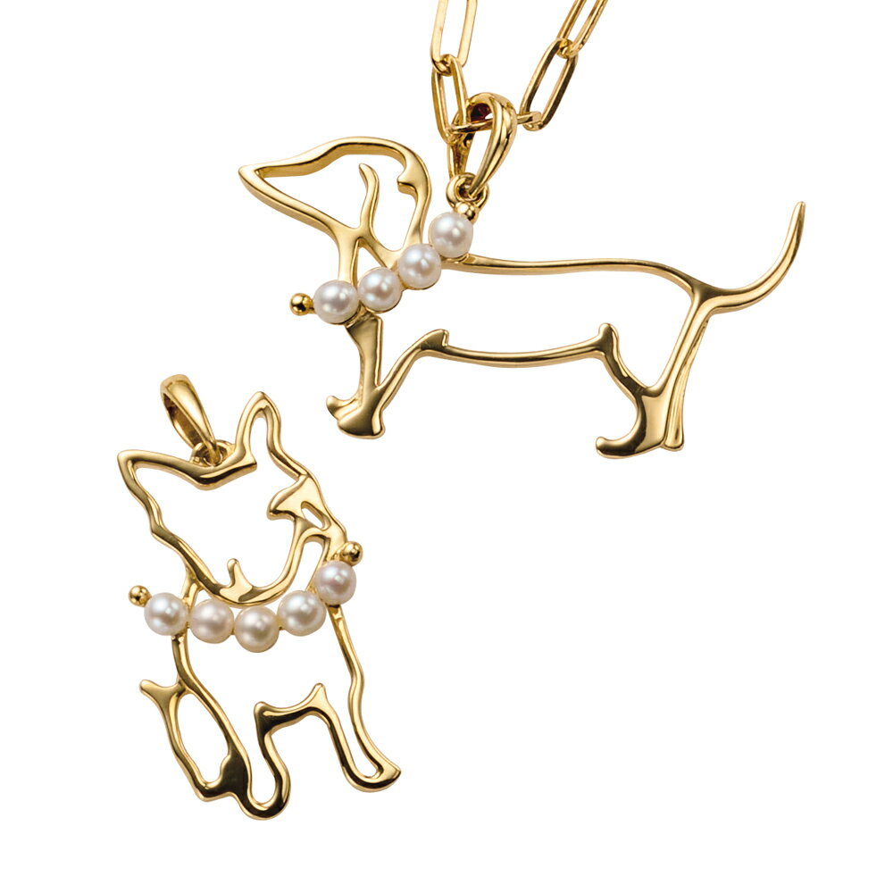 Happy! Lucky! Charmy!幸福を呼び込む自愛のアミュレット石言葉やモチーフに幸福なメッセージを込めて…。肌の上でエールを送ってくれるジュエリーをご紹介!Symbol of Good FortuneフレッシュウォーターパールをあしらったK18YGのフォルムで、可愛らしい“わんこ”モチーフを作りました。ダックスフントとフレンチブルドッグのどちらも抜け感があり、パールがアクセントになった何とも言えない愛らしい仕上がりです。ページ下部に画像の説明がございます。一部別売りの商品もございますので、説明文ご確認のうえご注文ください。>画像の説明はこちら<仕様・サイズ■型:(ア)ダックスフント、(イ)フレンチブルドッグ■商品寸法:(ア)約15×25mm(イ)約22×12mm・約1.5g■素材:淡水真珠・K18■原産国:タイ製■天然素材の為、色・形・大きさ・バランスが異なります。また、真珠にはえくぼと呼ばれる天然のきずがある場合があります。【送料マーク:A】 この商品の販売価格には配送料880円(税込)が含まれています。 画像の説明上から(ア)ダックスフント (イ)フレンチブルドッグ(ア)ダックスフント(イ)フレンチブルドッグSymbol of Good Fortune(幸運の象徴) シリーズ(イ)フレンチブルドッグ(イ)フレンチブルドッグ