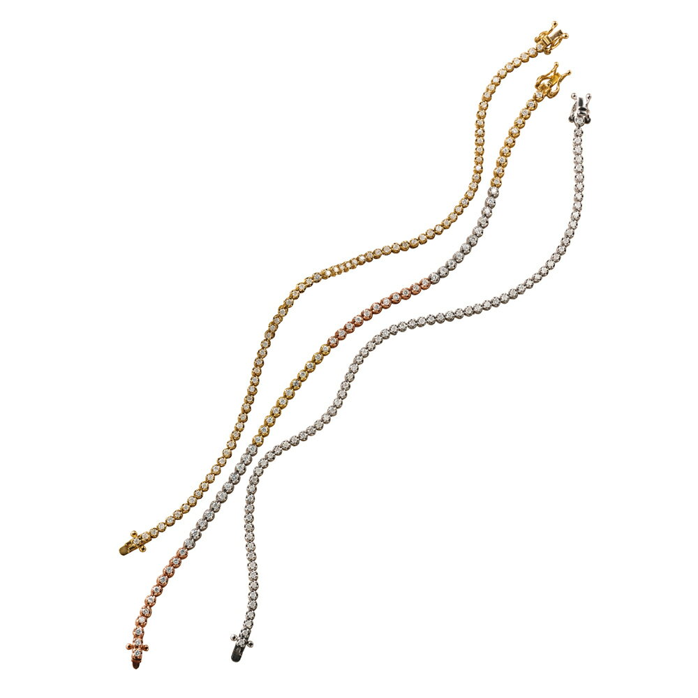 DAILY ITEMSマイ・スタイルを描く日常のパートナー自分を楽しませながら個性を演出してくれる…それが、日常に愛用するジュエリーのあり方です。迫力と応用性を備えた最旬アイテムをピックアップ!心和む一瞬をつくり出す愛らしさを手元に集めてシーンレスに活躍するダイヤテニスブレスレットは、ぜひ手に入れたいアイテム。YG、WG、PGとスリーカラーの4色展開。ページ下部に画像の説明がございます。一部別売りの商品もございますので、説明文ご確認のうえご注文ください。>画像の説明はこちら<仕様・サイズ■色:(ア)YG、(イ)WG、(ウ)PG、(エ)スリーカラー■サイズ(約):17・18cm■商品寸法:最大幅約2.5mm・約3.7g■素材:ダイヤ計1ct・K18■差込式■原産国:タイまたはインド製【送料マーク:A】 この商品の販売価格には配送料880円(税込)が含まれています。 画像の説明左から(ア)YG (エ)スリーカラー (イ)WG(ア)YG(イ)WG(エ)スリーカラーウォッチ&リング・ブレスレット シリーズ(イ)WG コーディネート例(イ)WG(イ)WG(イ)WG(イ)WG(イ)WG(ア)YG(ウ)PG