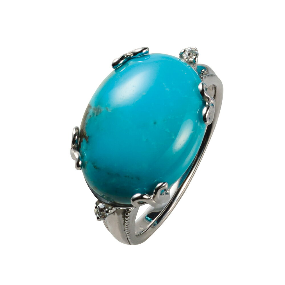 EXPRESS YOUR FEELINGS個性を彩る色石の演出感性に導かれるように纏うカラーストーンジュエリーは、アイデンティティを瑞々しく表現してくれるアイテムです。デザイン×配色で遊んだコーディネート例と共にご注目を。Turquoiseアリゾナ産の上質なターコイズのプリミティブな魅力が溢れるリング。ページ下部に画像の説明がございます。一部別売りの商品もございますので、説明文ご確認のうえご注文ください。>画像の説明はこちら<仕様・サイズ■今回準備数:25■サイズ(約):9・11・13・15・17・19番■商品寸法:最大幅約11.5mm・約3.3g■素材:ターコイズ約5ct・キュービックジルコニア・SV925(ロジウム仕上げ)■原産国:日本製(ターコイズはアリゾナ産)■天然素材の為、色・形・大きさ・柄の出方が異なります。【送料マーク:A】 この商品の販売価格には配送料880円(税込)が含まれています。 画像の説明明るく晴れ渡った空を思わせるターコイズは、豊潤なエレガンスを醸すアメシストと好相性。