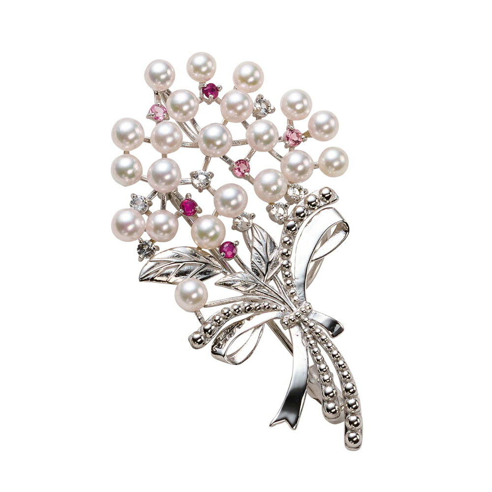 Happy! Lucky! Charmy!幸福を呼び込む自愛のアミュレット石言葉やモチーフに幸福なメッセージを込めて…。肌の上でエールを送ってくれるジュエリーをご紹介!Serenity and Purifyアコヤパールに、ルビー・ピンクトルマリン・ホワイトトパーズをあしらい、美しい花束を表現したブローチです。普段の装いに添えるだけで、華やかさがぐっと高まり、ワンランク上のスタイルに。花束モチーフのため、感謝の気持ちを込めたギフトとしてもおすすめです。ペンダントヘッドとしてもお使いいただけます。ページ下部に画像の説明がございます。一部別売りの商品もございますので、説明文ご確認のうえご注文ください。>画像の説明はこちら<仕様・サイズ■商品寸法:約45×28mm・約5g■素材:アコヤ真珠(約3〜3.5mm・セミバロック)・ルビー・ピンクトルマリン・ホワイトトパーズ・SV925(ロジウム仕上げ)・合金■鉄砲式■原産国:日本製■天然素材の為、色・形・大きさ・バランスが異なります。また、真珠にはえくぼと呼ばれる天然のきずがある場合があります。【送料マーク:A】 この商品の販売価格には配送料880円(税込)が含まれています。 画像の説明Serenity & Purity(安らぎと清らかさ) パールジュエリーシリーズ