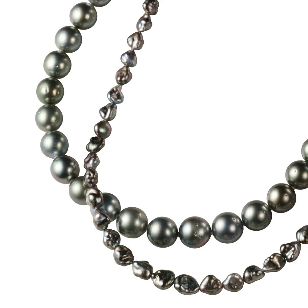 EXPRESS YOUR FEELINGS個性を彩る色石の演出感性に導かれるように纏うカラーストーンジュエリーは、アイデンティティを瑞々しく表現してくれるアイテムです。デザイン×配色で遊んだコーディネート例と共にご注目を。瑞々しいモード感を奏でる、パールグレーの佇まい。静謐な美しさのグレーパールは、クール&モダンに纏うのが大人の流儀。タヒチ産の大珠黒蝶真珠を11〜13mmのグラデーションで組んだネックレス。抜きんでたラグジュアリー感を放ちます。ページ下部に画像の説明がございます。一部別売りの商品もございますので、説明文ご確認のうえご注文ください。>画像の説明はこちら<仕様・サイズ■今回準備数:5■商品寸法:約45cm■素材:黒蝶真珠(約11〜13mm・グレー系・セミラウンド)・SV925(ロジウム仕上げ)■差込式■原産国:日本製■天然素材の為、色・形・大きさが異なります。【送料マーク:A】 この商品の販売価格には配送料880円(税込)が含まれています。 画像の説明BlueTopaz & GrayPearl シリーズコーディネート例/耳や手元にブルーの輝きをちりばめて、エッジィな配色スタイルを楽しんで。