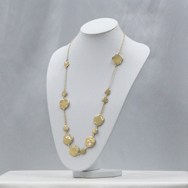 優しい色味のオーバルプレートとカラフルなウッドビーズを組み合わせたネックレスです。紐の長さ調整可能/ファッションに合わせてお楽しみいただけます。軽量な素材で見た目よりも軽くて首や肩に負担がかかりにくいのも魅力です.【サイズ】L90?調節可能別カラーはこちら! グリーン