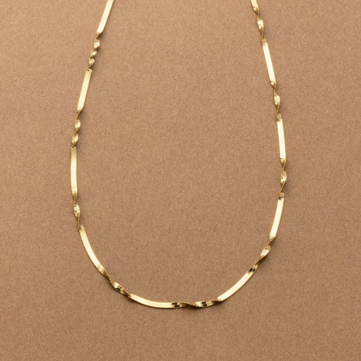 キラキラと光を反射する平スネークチェーンのネックレス。等間隔でツイストを加えたデザインで、シンプルすぎずデコルテの程よいアクセントに。どんなお洋服にも大人っぽく馴染んでくれるからデイリーに活躍しそう◎錆びにくく傷に強いステンレス製です。■サイズチェーン長さ全長:48cmチェーン長さ:42cmチェーン幅:0.2cmアジャスター:6cm■重さ2.7g■素材サージカルステンレス ※低アレルギー素材です。[関連ワード] ひねり ねじり 重ね付け ファッション おすすめ かわいい 大人 レディース 定番 上品 エレガント カジュアル きれいめ シンプル フェミニン 贈り物 自分へのご褒美 SNS 普段使い 交換 妻 夫 彼女 彼氏 友達 20代 30代 40代 50代 春 夏 秋 冬ブランド名:Cream dot.(クリームドット)返品・交換について購入後の交換は受け付けておりません。予めご了承ください。返品を希望される場合は購入履歴一覧の「ショップへの問い合わせ」よりお問い合わせください。=========================複数配送先指定について1件の注文に対して、異なる住所への配送は対応出来かねます。恐れ入りますが、異なる住所へ配送をご希望の場合、配送先毎に分けて注文いただきますようお願い申し上げます。【アクセサリーWOMEN】ワンサイズ ゴールド シルバー