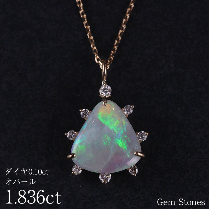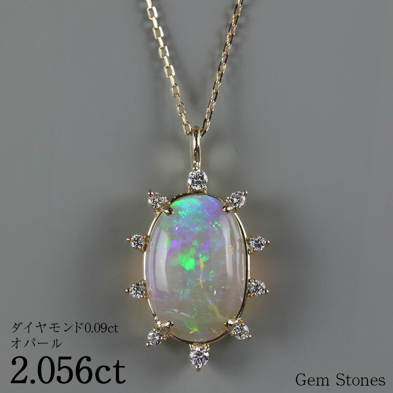 当店が厳選したカラーストーンはどれも大粒で上質なものばかり。当店では30年以上にもおよぶ現地バイヤーとの信頼関係があるからこそ、通常日本の市場に出回ることのない個性豊かなルースを数多く取り揃えることが可能となっています。 地金 K18 石 オパール カラット 2.056ct サイズ 20.9x12.4x5.4mm 評価(10段階) 発色 ★★★★★★★☆☆☆ 遊色効果 ★★★★★★★★☆☆ 透明感 ★★★★★★★★★☆ インクルージョン ★★★★★★★★☆☆ このルースの特徴 こちらのオパールは、見事な透明感と鮮やかな発色が特徴です。角度によって変わる遊色効果はまさに圧巻で、深みのあるグリーン、ブルー、パープルといった多彩なカラーが絶妙に浮かび上がります。宝石の中に閉じ込められた光が幻想的な美しさを放ち、あらゆる角度で違う表情を見せてくれます。透明感も非常に高く、光を透過することでオパール特有の奥行きのある輝きを楽しめます。 チェーン45cm調整可能 / 重さ2.1gエレガントなオパールペンダント 2.056カラットのオパールに、0.09カラットのダイヤモンドをあしらった、一点もののペンダントです。ゴールドとオパールの光沢が絶妙に調和し、特別な輝きを放ちます。上質なダイヤモンドがオパールの周囲を美しく縁取り、光の反射によって更に美しい輝きを引き出します。シンプルでありながらも存在感のあるこのペンダントは、普段使いはもちろん、特別な場面でもお楽しみいただける逸品です。 地金 K18 石 オパール カラット 2.056ct サイズ 20.9x12.4x5.4mm 評価(10段階) 発色 ★★★★★★★☆☆☆ 遊色効果 ★★★★★★★★☆☆ 透明感 ★★★★★★★★★☆ インクルージョン ★★★★★★★★☆☆ このルースの特徴 こちらのオパールは、見事な透明感と鮮やかな発色が特徴です。角度によって変わる遊色効果はまさに圧巻で、深みのあるグリーン、ブルー、パープルといった多彩なカラーが絶妙に浮かび上がります。宝石の中に閉じ込められた光が幻想的な美しさを放ち、あらゆる角度で違う表情を見せてくれます。透明感も非常に高く、光を透過することでオパール特有の奥行きのある輝きを楽しめます。 チェーン45cm調整可能 / 重さ2.1g