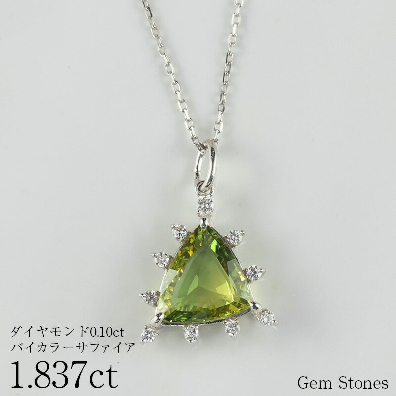 当店が厳選した非加熱サファイアはどれも大粒で上質なものばかり。その秘密は宝石の国スリランカでの買い付けにあります。30年以上にもおよぶ現地バイヤーとの信頼関係があるからこそ、通常日本の市場に出回ることのない個性豊かなルースを数多く取り揃えることが可能となっています。 地金 Pt900 石 バイカラーサファイア カラット 1.16ct サイズ 7.8x5.9x4.7mm このルースの特徴 美しい非加熱バイカラーサファイア 。イエローとグリーンの発色と抜群の透明感、輝きを有します。非加熱バイカラーサファイア1.16ct 希少なバイカラーサファイアのペンダント イエローとグリーンの発色を有したバイカラーサファイア。輝き、透明感ともに申し分ない美しいルースを使用しています。シンプルなデザインで仕上げているため、ご褒美ジュエリーやプレゼントにピッタリです。 地金 Pt900 石 バイカラーサファイア カラット 1.16ct サイズ 7.8x5.9x4.7mm このルースの特徴 美しい非加熱バイカラーサファイア 。イエローとグリーンの発色と抜群の透明感、輝きを有します。 チェーン45cm無段階調整可能 / 重さ1.7g
