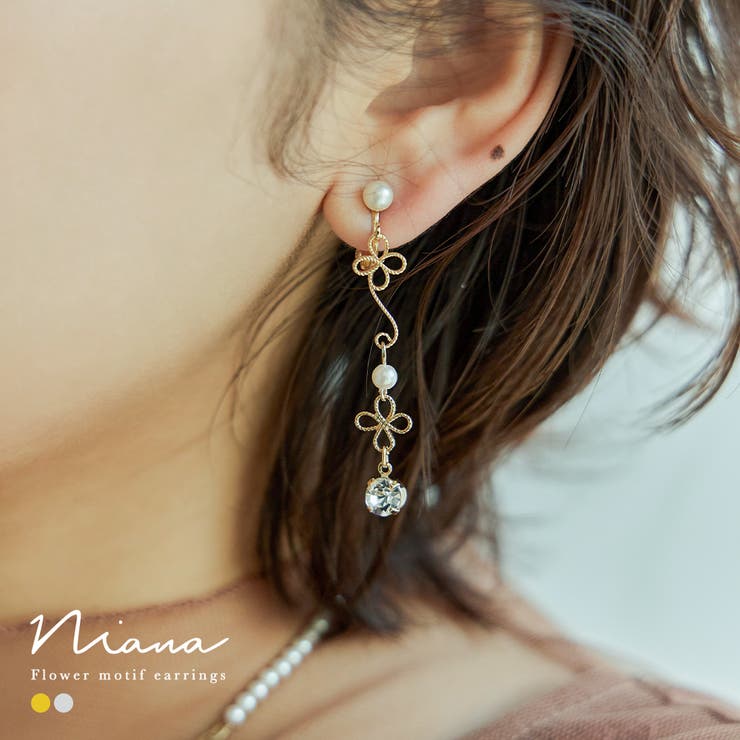 niana ニアナ 大人の女性らしい優雅な印象を与えてくれるイヤリング。程よい大きさのストーンとフラワーモチーフが、顔周りに華やかな印象を与えてくれます。パーティーシーンはもちろんデイリー使いもできる一品。シンプルなドレスに合わせて耳元を主役にしたい、そんな存在感を放つアクセサリー。同シリーズのネックレスとセットで着用することで、統一感が出せるのでおすすめです。(ネックレス:na0030005244)オススメシーン結婚式・二次会・披露宴・お呼ばれ・成人式・同窓会女子会・2次会・謝恩会・パーティー・デート・演奏会発表会など多様なシーンのコーディネートに使えます。【素材】真鍮・プラスチック・ガラス【生産国】日本【サイズデータ】(長さ)F:4.5cm(トップ)F:4mm【カラー展開】ゴールド/シルバー【商品注意事項】※サイズはメーカー採寸になりますが、多少誤差が生じる場合がございます。※モデル画像は環境光の影響によりカラーが異なって見える場合がございます。平置きのカラー画像を御参考下さい。※商品画像はご覧になるモニターなどの環境によって若干の誤差があります。返品・交換について購入後の交換は受け付けておりません。予めご了承ください。返品を希望される場合は購入履歴一覧の「ショップへの問い合わせ」よりお問い合わせください。=========================複数配送先指定について1件の注文に対して、異なる住所への配送は対応出来かねます。恐れ入りますが、異なる住所へ配送をご希望の場合、配送先毎に分けて注文いただきますようお願い申し上げます。【アクセサリーWOMEN】ゴールド シルバー F 真鍮・プラスチック・ガラスゴールド シルバー