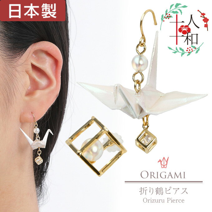 ◆和モダンアクセサリー イヤリング ピアス パールap10128goldweb 折鶴◆【素材】真鍮・合金・紙・プラスチック・塗料・チタン・キュービックジルコニア【サイズ】【鶴ピアス】縦(フック除く):約3cmフェイクパール:直径約0.4cm鶴/縦:約1.7cm横(羽)約4cm奥行:約2.4cmキューブ:一辺約0.4cm 【キューブピアス】ポストの長さ:約1.2cmキューブ:一辺約1cmフェイクパール:直径約0.6cm【生産地】日本【詳細】左右のデザインが異なるアシンメトリーピアス。折り鶴と小さいキューブが揺れるフックピアスと、キューブの中にフェイクパールが入ったスタッドピアス、左右で違う表情を見せるレトロモダンな和風デザイン。職人の手によって丁寧に折られた鶴は、特殊なパール加工が施されており真珠のように輝きます。個体により形の違いが出るのも楽しみの一つです。浴衣や着物など和服はもちろん洋服にも合うデザインになっています。【ハンドメイド商品について】手作業で作る商品のため、鶴の大きさに違いが出ることがございます。全く同じものにはならない所も「個性」として、職人による手作業の味や魅力をお楽しみ頂ければと思います。■K10,14,18ゴールド(イエロー)・ピンクゴールド・ホワイトゴールド・グリーンゴールドの商品温泉や海に入る時には必ず外してください。変色の原因になります。■シルバー925(無垢)の商品温泉や海に入る時には必ず外してください。変色の原因になります。■シルバー925ロジウムコーティング・ピンクゴールドコーティング・ピンクゴールドコーティングの商品温泉や海に入る時には必ず外してください。変色の原因になります。市販の研磨剤入りシルバー磨きなどでゴシゴシと磨かれますとロジウムコーティングやイエローゴールドコーティング・ピンクゴールドコーティングがはがれてしまうことがあります。ご注意ください。コート(メッキ)がはがれる原因になりますので浸けるタイプのシルバー洗浄液はご使用にならないでください。*クリスマスプレゼントにも人気です。卒業祝 入学祝 入社祝 ホワイトデーなどにお勧めです。 【通年ギフトにも対応しております】プレゼント X'mas Xmas 誕生日祝い 誕生日プレゼント バースデープレゼント 結婚祝い 結婚内祝い 出産祝い 出産内祝い 長寿祝い 結婚記念日 内祝 御祝 祝還暦 バレンタインデー ホワイトデー ホワイトデーお返し 入学祝い 卒業祝い 母の日 母の日プレゼント 母の日ギフト 父の日 父の日のプレゼント 父の日ギフト 自分へのご褒美 ハロウィン ポイント消化ピアスにつきましては衛生上の為、初期不良以外の返品・交換は一切お受けできませんのであらかじめご了承くださいませ。卒業祝 入学祝 入社祝 バレンタイン ホワイトデー◆和モダンアクセサリー イヤリング ピアス パールap10128goldweb 折鶴◆ 素材 真鍮・合金・紙・プラスチック・塗料・チタン・キュービックジルコニア サイズ 【鶴ピアス】縦(フック除く):約3cmフェイクパール:直径約0.4cm鶴/縦:約1.7cm横(羽)約4cm奥行:約2.4cmキューブ:一辺約0.4cm 【キューブピアス】ポストの長さ:約1.2cmキューブ:一辺約1cmフェイクパール:直径約0.6cm 生産地 日本 詳細 左右のデザインが異なるアシンメトリーピアス。折り鶴と小さいキューブが揺れるフックピアスと、キューブの中にフェイクパールが入ったスタッドピアス、左右で違う表情を見せるレトロモダンな和風デザイン。職人の手によって丁寧に折られた鶴は、特殊なパール加工が施されており真珠のように輝きます。個体により形の違いが出るのも楽しみの一つです。浴衣や着物など和服はもちろん洋服にも合うデザインになっています。【ハンドメイド商品について】手作業で作る商品のため、鶴の大きさに違いが出ることがございます。全く同じものにはならない所も「個性」として、職人による手作業の味や魅力をお楽しみ頂ければと思います。