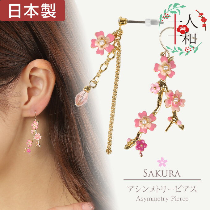 ◆和モダンアクセサリー イヤリング アシンメトリーピアスap9665pkweb 桜◆【素材】真鍮・合金・ガラス・プラスチック・チタン(ポスト)・サージカル(フック)【サイズ】【スタッドピアス】縦:約4.3cm桜/直径:約0.7cm(最厚部約0.2cm)雫/縦横:約0.7cm×約0.4cm(最厚部約0.4cm)短いチェーンの長さ(雫部分含まず):約2cm長いチェーンの長さ:約3.8cmポスト長さ:約1cm【フックピアス】縦横:約3.5cm(フック部分除く)×約2cm(最厚部約0.4cm)【生産地】日本【詳細】左右のデザインが異なる “アシンメトリー” のロングピアス。多くの人から愛され親しまれている「桜」をモチーフにしたレトロモダンな和風デザインとなっています。鮮やかなピンクに染まった桜と、そこから流れ落ちたような雫が耳元で揺れるタイプ、そして 「しだれ桜」 のような華やかなタイプのデザイン。左右で違う表情を見せるアシンメトリーピアスです。浴衣や着物など和服はもちろん洋服にも合うデザインになっています。【ハンドメイド商品について】手作業で作る商品のため、同じ商品でも色合いや柄の入り方に違いが出ます。全く同じものにはならない所も「個性」として、職人による手作業の味や魅力をお楽しみ頂ければと思います。■K10,14,18ゴールド(イエロー)・ピンクゴールド・ホワイトゴールド・グリーンゴールドの商品温泉や海に入る時には必ず外してください。変色の原因になります。■シルバー925(無垢)の商品温泉や海に入る時には必ず外してください。変色の原因になります。■シルバー925ロジウムコーティング・ピンクゴールドコーティング・ピンクゴールドコーティングの商品温泉や海に入る時には必ず外してください。変色の原因になります。市販の研磨剤入りシルバー磨きなどでゴシゴシと磨かれますとロジウムコーティングやイエローゴールドコーティング・ピンクゴールドコーティングがはがれてしまうことがあります。ご注意ください。コート(メッキ)がはがれる原因になりますので浸けるタイプのシルバー洗浄液はご使用にならないでください。*クリスマスプレゼントにも人気です。卒業祝 入学祝 入社祝 ホワイトデーなどにお勧めです。 【通年ギフトにも対応しております】プレゼント X'mas Xmas 誕生日祝い 誕生日プレゼント バースデープレゼント 結婚祝い 結婚内祝い 出産祝い 出産内祝い 長寿祝い 結婚記念日 内祝 御祝 祝還暦 バレンタインデー ホワイトデー ホワイトデーお返し 入学祝い 卒業祝い 母の日 母の日プレゼント 母の日ギフト 父の日 父の日のプレゼント 父の日ギフト 自分へのご褒美 ハロウィン ポイント消化ピアスにつきましては衛生上の為、初期不良以外の返品・交換は一切お受けできませんのであらかじめご了承くださいませ。卒業祝 入学祝 入社祝 バレンタイン ホワイトデー◆和モダンアクセサリー イヤリング アシンメトリーピアスap9665pkweb 桜◆ 素材 真鍮・合金・ガラス・プラスチック・チタン(ポスト)・サージカル(フック) サイズ 【スタッドピアス】縦:約4.3cm桜/直径:約0.7cm(最厚部約0.2cm)雫/縦横:約0.7cm×約0.4cm(最厚部約0.4cm)短いチェーンの長さ(雫部分含まず):約2cm長いチェーンの長さ:約3.8cmポスト長さ:約1cm【フックピアス】縦横:約3.5cm(フック部分除く)×約2cm(最厚部約0.4cm) 生産地 日本 詳細 左右のデザインが異なる “アシンメトリー” のロングピアス。多くの人から愛され親しまれている「桜」をモチーフにしたレトロモダンな和風デザインとなっています。鮮やかなピンクに染まった桜と、そこから流れ落ちたような雫が耳元で揺れるタイプ、そして 「しだれ桜」 のような華やかなタイプのデザイン。左右で違う表情を見せるアシンメトリーピアスです。浴衣や着物など和服はもちろん洋服にも合うデザインになっています。【ハンドメイド商品について】手作業で作る商品のため、同じ商品でも色合いや柄の入り方に違いが出ます。全く同じものにはならない所も「個性」として、職人による手作業の味や魅力をお楽しみ頂ければと思います。