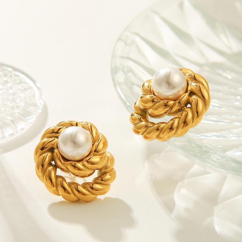 ピアス レディース 18金 ステンレス 麻の葉 パール チタン 高級感 イヤリング 電気メッキ加工
