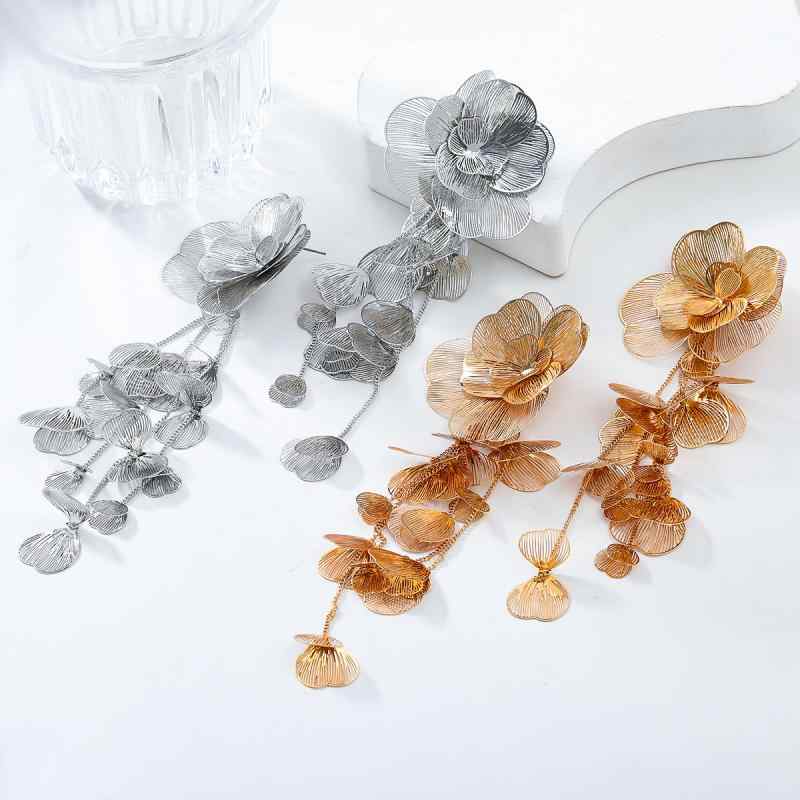 イヤリング レディース 女性用 軽奢 金属 テクスチャ 多層 花 ドロップ型 アレルギー対応 かわいい エレガント パーティー